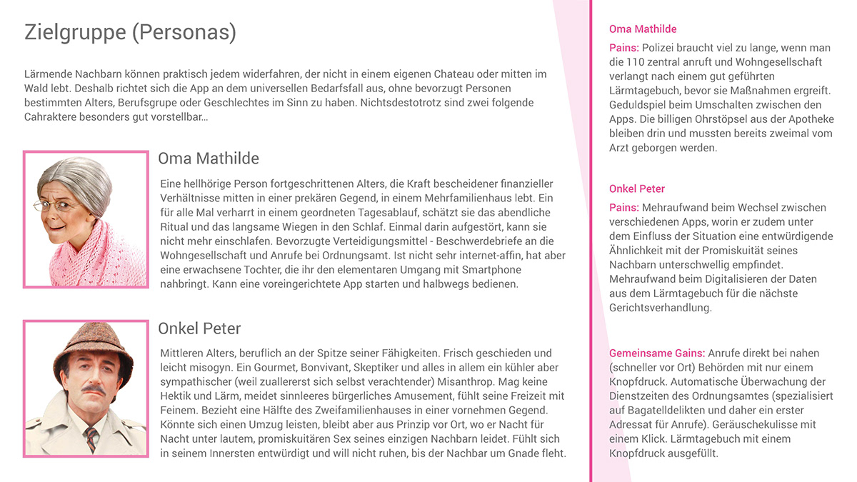 Jeder, der einmal gegen laute Nachbarn ankämpfen musste weiß, wie sehr einem besonders zu Anfang der Auseinandersetzung ein Überblick über die zur Verfügung stehenden Mittel fehlt. Diese App soll das volle Verteidigungsarsenal anbieten, das ansonsten erst mühevoll zusammengetragen werden muss. Warum Paulchen? Weil er nett ist und nur seine Ruhe haben will. Und weil er es jedes mal am Ende schafft, sich gegen ignorante Störenfriede geschickt zur Wehr zu setzen. Der folgende App-Prototyp entstand im Zuge eines Lernprojektes.