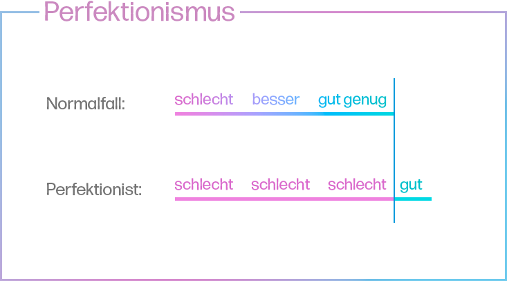 Meine persönliche Ergänzung zum Begriff Perfektionismus. Ein Perfektionist kennt nur zwei Zustände – schlecht und gut, ohne Abstufungen. Das (und nicht der endlose Verbesserungsdrang) motiviert ihn, an einem „bereits guten“ Ergebnis weiterzuarbeiten.