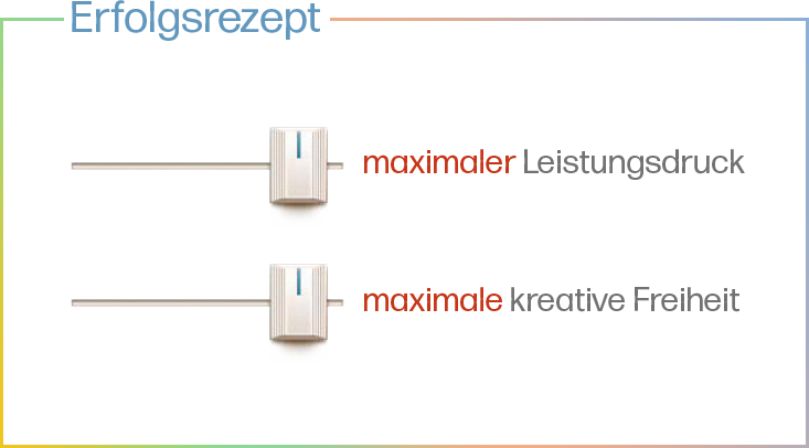 Gemäß dieser (von mir fremdübernommenen) Idee, werden Leistungsdruck und kreative Freiheit nicht als gegensätzliche Faktoren, sondern als komplementäre, gleichsam wichtige Voraussetzungen des guten Designs verstanden.
