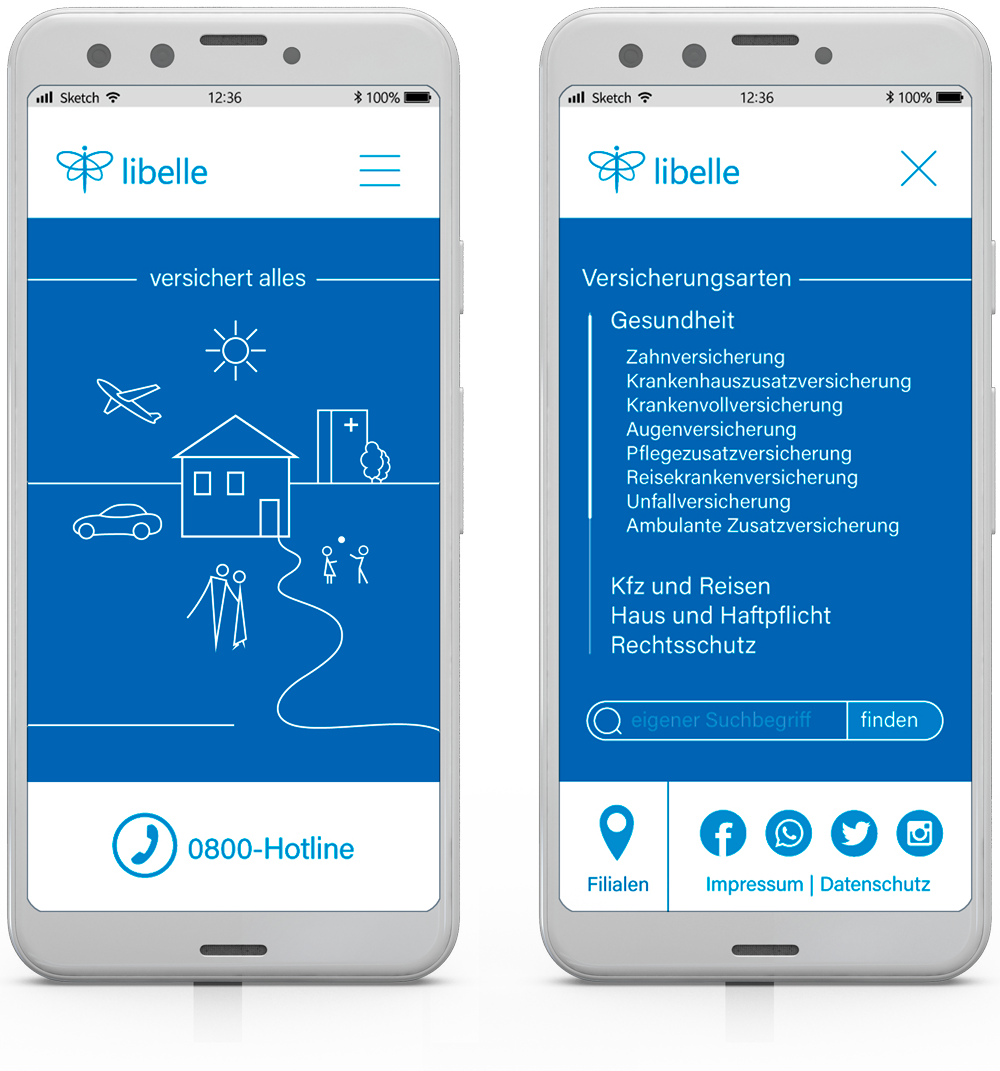 Verschiedene Versicherungsgebiete in einer Grafik — Naturgefahren, Gesundheit, Hausrat, Leben, Kfz, Reisen… Der hohe Abstraktionsgrad dient der Vermittlung der Hauptidee von Rundumschutz quer durch alle Versicherungsarten.