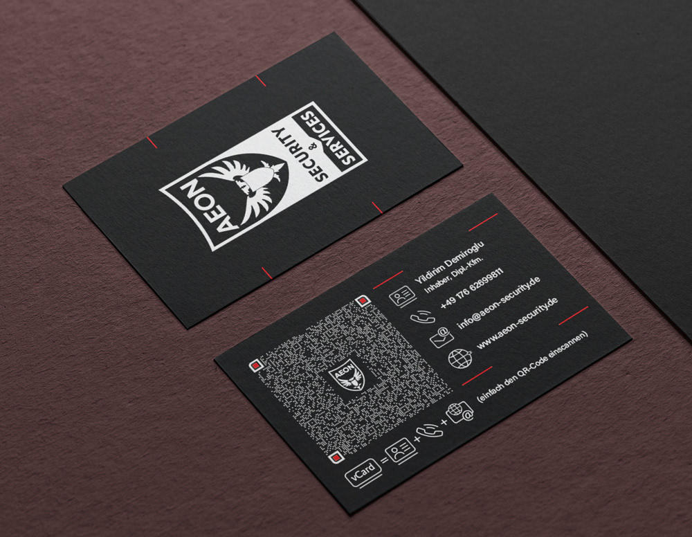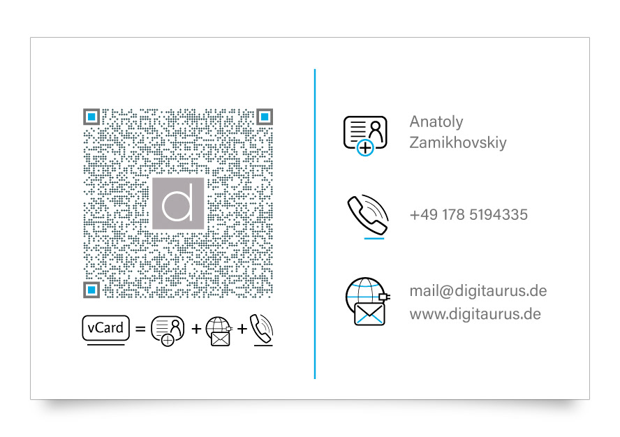 Icons und QR-Code mit einer erklärenden Icon-Reihe unten sind selbst konzipiert und gezeichnet.