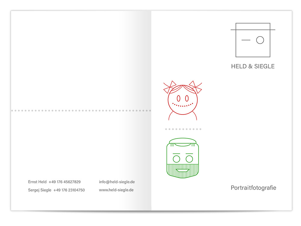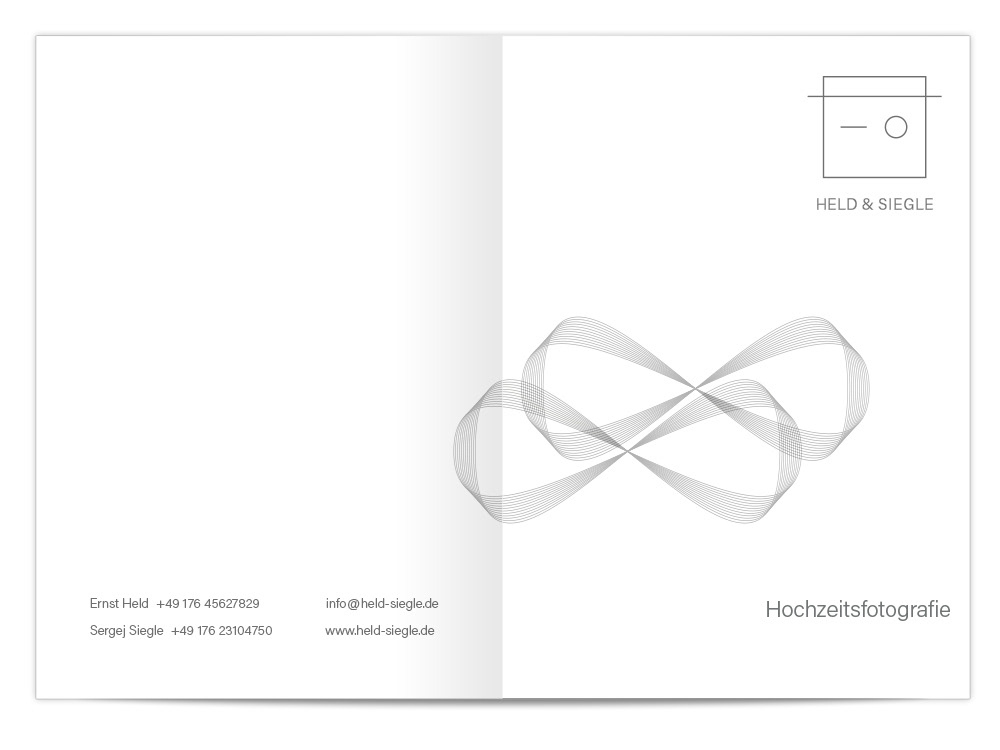 Portrait- und Hochzeits-Fotografie. Weg von einer provinziell-einfältigen Gestaltung, zu einer mehr exzentrischen und avantgardistischen. Die innere Aufmachung des Flyers zeigt vier Fotos im der gestochen scharfen Qualität. Kein Text, nur Fotos